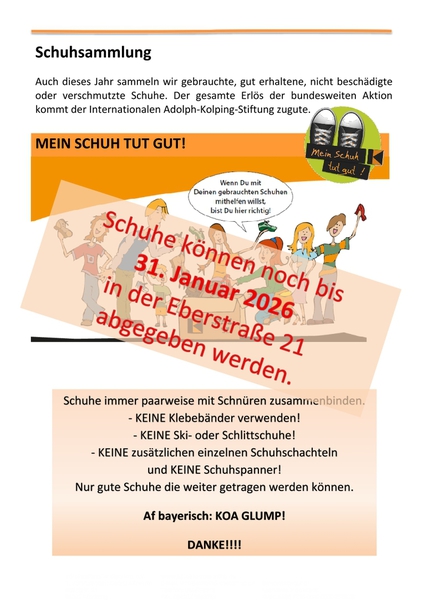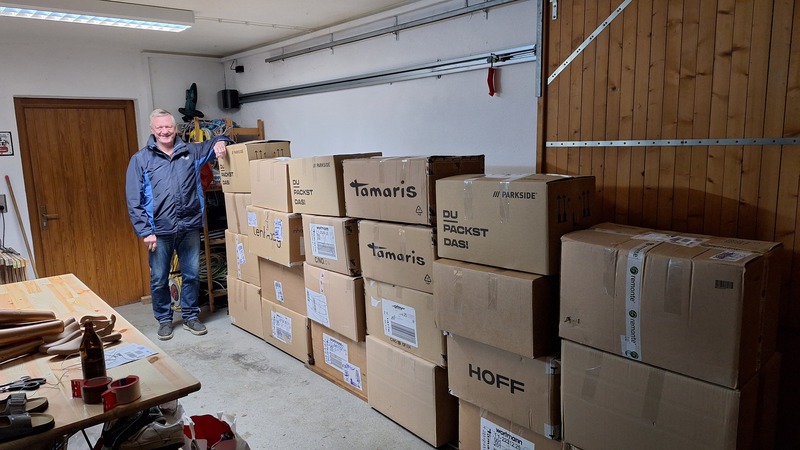 Für die Schuhaktion "Mein Schuh tut gut" zum Kolpinggdenktag 2025, wurde auch bei der KF Kösching kräftig die Werbetrommel gerührt. Die fleißigen Helfer waren erfreut, dass bis Ende Januar 2026 aus der Köschinger Bevölkerung und Umgebung eine relativ große Menge an guten gebrauchten Schuhen beim Kolpingvorsitzenden Georg Altmann angegeben wurden. Leider waren neben guten, teils neuen Schuhen auch völlig unbrauchbare Paare dabei, die den Weg in die Mülltone gehen mussten. Zum Schluss waren es 23 gut gefüllte Kartons mit einem Einzelgewicht zwischen 10 und 15 kg.