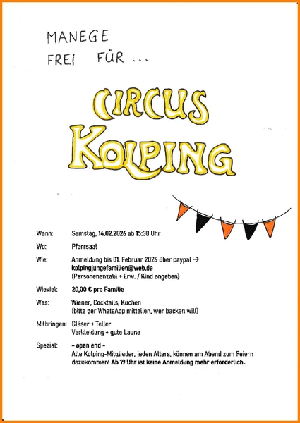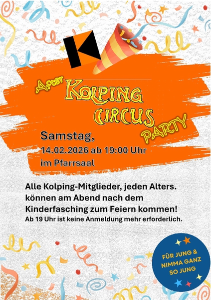 Am Faschingssamstag fand im Pfarrsaal die erste unvergessliche Circus Kolping-Party statt! Die rund 120 Kinder und Erwachsenen waren von Anfang an dabei, als es am Nachmittag mit einem bunten Treiben aus Artisten, Seiltänzern, Gewichthebern, Popcornverkäufern und einem beeindruckenden Messerwerfer begann. Die Teilnehmer wurden in die Welt des Zirkus entführt und konnten sich sofort in die Atmosphäre einleben.
