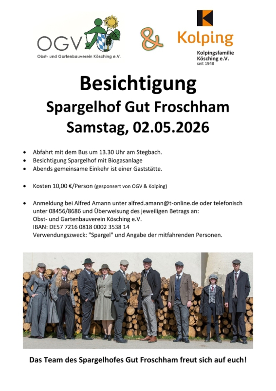 - Kosten 10,00 €/Person (gesponsert von OGV & Kolping)