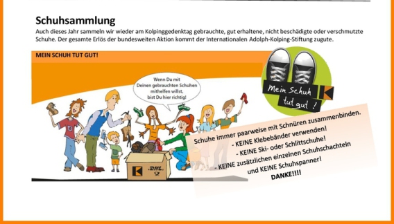 Wie sammeln gebrauchte, gut erhaltene, nicht beschädigte oder verschmutzte Schuhe. Der gesamte Erlös der bundesweiten Aktion kommt der Internationalen Adolph-Kolping-Stiftung zugute.