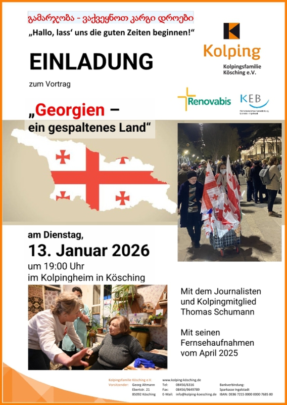 Unser Kolpingmitglied Thomas Schumann wird uns am 13. Januar 2026 um 19:00 Uhr im Kolpingheim von seinen Erfahrungen von seiner Reise berichten.